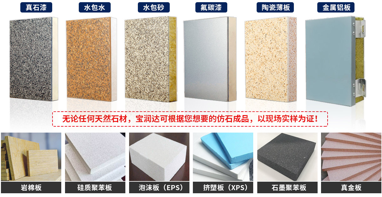 寶潤(rùn)達(dá)擁有6條先進(jìn)自動(dòng)化一體板生產(chǎn)線(xiàn),可生產(chǎn)飾面效果{真石漆、多彩漆,水包水,水包沙,實(shí)色/金屬氟碳漆、陶瓷薄板、鋁板},保溫芯材采用{ A級(jí)防火巖棉板,真金板,擠塑板,泡沫板,石墨聚苯板,硅脂聚苯板}等,滿(mǎn)足各種項(xiàng)目芯材、飾面效果定制要求,日產(chǎn)量12000平,極速發(fā)貨。